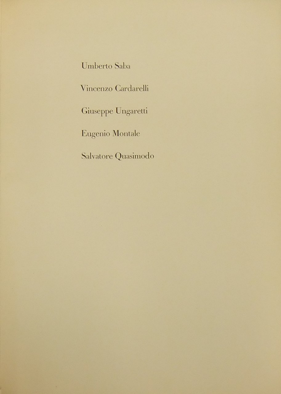 Italienische Lyrik der Gegenwart. Umberto Saba, Vincenzo Cardarelli, Giuseppe Ungaretti, Eugenio Montale, Salvatore Quasimodo | Libri antichi e moderni | Von Bosshard Hans Rudolf (A C. Di), Von Bosshard Hans Rudolf