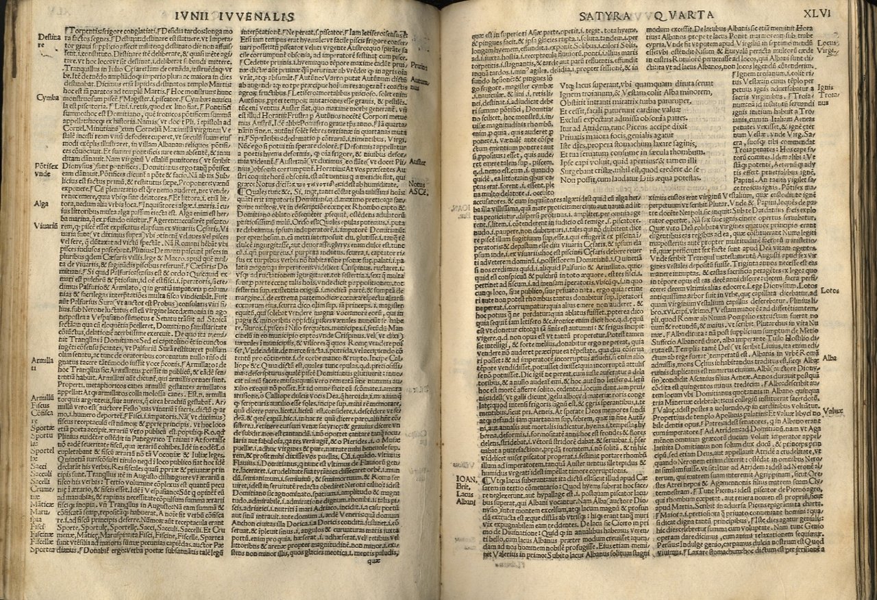 Iu. Iuvenalis Aquinatis Satyrographi Opus. Interprete Ioanne Britannico viro eruditissimo. Una cum Iodoci Badii Ascensii familiaribus explanationibus. Cum figuris apte appositis. Index praeterea omnium rerum in margine existentium secundum ordinem alphabeticum: ut facilius quaecumque volueris invenire possis. | Libri antichi e moderni | Iuvenalis D.I.