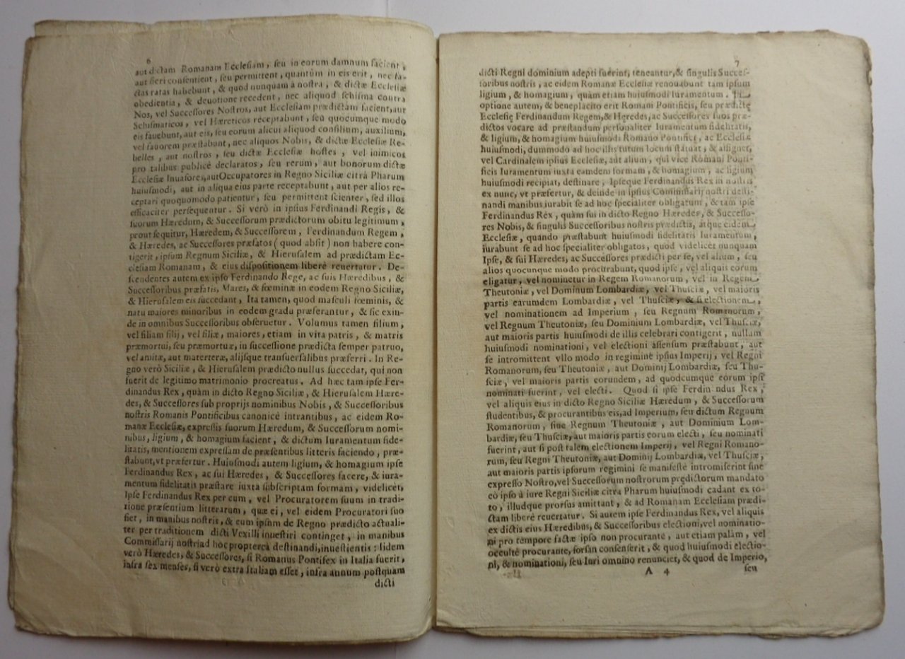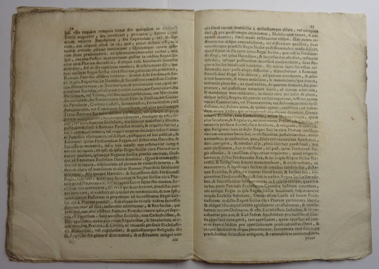 Venti pagine in 4to (20x28 cm); in barbe. Titolo alla prima pagina, iniziale xilografica (E). All'ultima pagina, tondo con croce incisa, seguita dai nomi dei cardinali. Data ricavata dal datum: 9 luglio 1510. Ma si può nutrire dubbi sulla reale data di stampa, anche se l'Iccu riporta proprio la data 1510, segnalandone copia alla Biblioteca Casanatense. Potrebbe essere una riedizione di metà o fine 500, di cui però non si è trovata traccia bibliografica. Importante documento che indica e rivendica i territori sottoposti alla giurisdizione papale, soprattutto nel meridione d'Italia