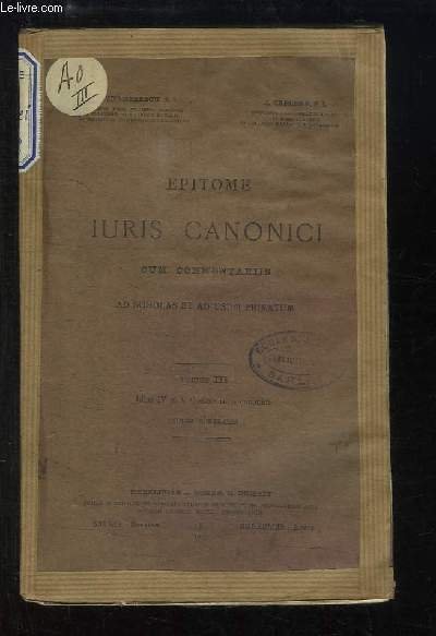 Iuris Canonici cum commentariis ad scholas et ad usum privatum. TOMUS 3 : Libri IV et V Codicis iuris canonici, Indices generales | Libri antichi e moderni | Epitome, Vermeersch A. Et Creusen J.