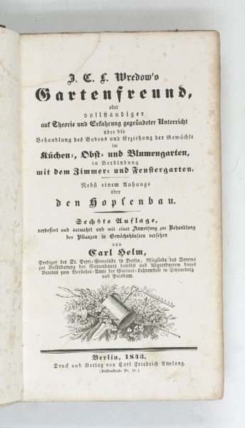 J. C. L. Wredow's Gartenfreund, oder vollständiger auf Theorie und Erfahrung gegründeter Unterricht über die Behandlung des Bodens und Erziehung der Gewächse im Küchen-, Obst- und Blumengarten, in Verbindung mit dem Zimmer- und Fenstergarten. Sechste Auflage.