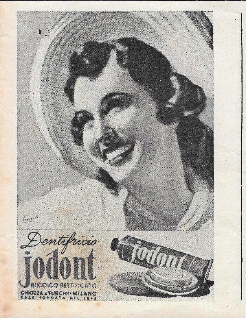 Jodont, Dentifricio Bijodico Rettificato. Advertising 1943