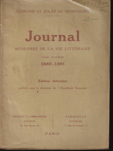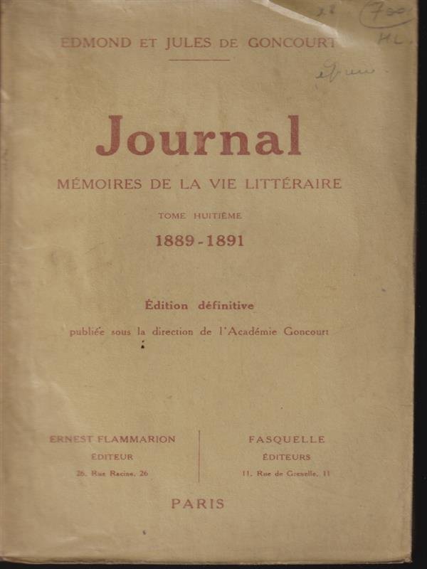 Journal memories de la vie litteraire tome VIII 1889-1891 | Libri antichi e moderni | Goncourt
