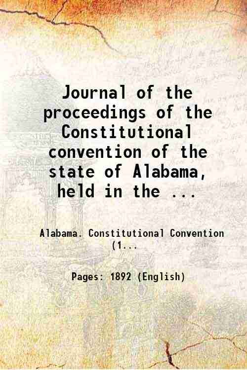 Journal of the proceedings of the Constitutional convention of the state of Alabama, held in the city of Montgomery, commencing May 21st, 1901. With an index prepared by the secretary 1901 | Libri antichi e moderni | Alabama. Constitutional Convention ()