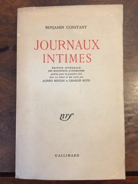 Journaux intimes. Editions intégrale des manuscrits autographes publiée pour la première fois avec un index et des notes par Alfred Roulin et Charles Roth | Libri antichi e moderni | Constant, Benjamin