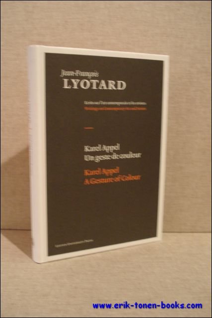 Relie, couverture carton, 160 x 235mm., 249pp., 25 illustrations en couleurs hors texte. ISBN 9789058677563. Karel Appel. Un geste de couleur est le premier d'une serie de cinq volumes reunissant les ecrits les plus importants de Jean-Francois Lyotard (1924 - 1998) sur l'art contemporain et les artistes. Le livre qu'il a consacre a l'art de Karel Appel (1921 - 2006) est sans doute un texte parmi les plus acheves et les plus inspires de tous les ecrits inclus dans la serie. Ni le manuscrit original en francais ni la traduction en anglais n'ont jamais ete publies, et leur presentation face a face devrait constituer une plus-value considerable. Dans ce livre, Lyotard presente le matierisme de Karel Appel comme offre de presence, presence differee - c'est du visuel ou tout predicat est suspendu, du visuel touche, ? geste ? de couleur plus que propriete de couleur, apparition qui se tient au bord de l'abime. L'epilogue de Christine Buci-Glucksmann situe la position de Karel Appel. Un geste de couleur dans l'ensemble des ecrits sur l'art de Lyotard, en prenant en compte egalement l'oeuvre ulterieure du philosophe. Nouveau livre.