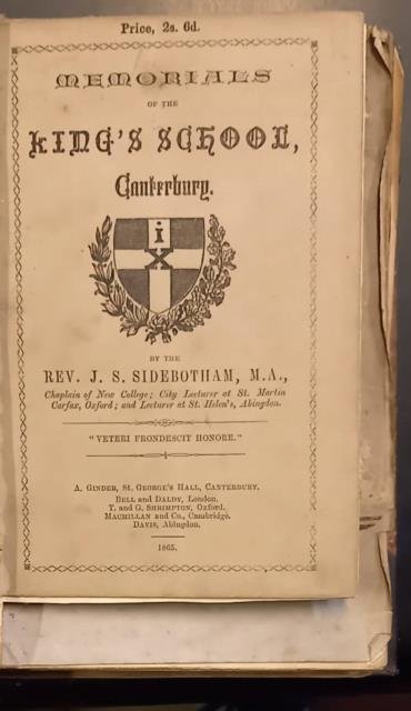 KING'S SCHOOL, CANTERBURY. | Libri antichi e moderni |