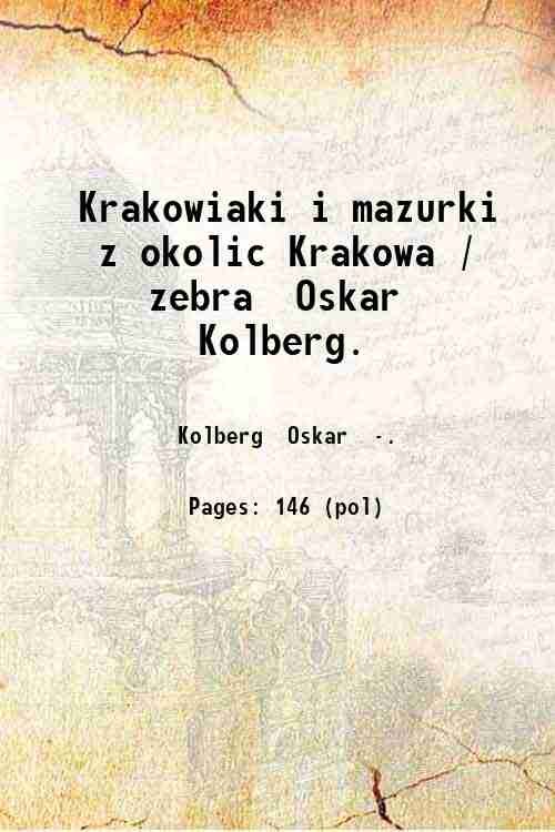 Krakowiaki i mazurki z okolic Krakowa / zebra? Oskar Kolberg. 1874 | Libri antichi e moderni | Kolberg Oskar .