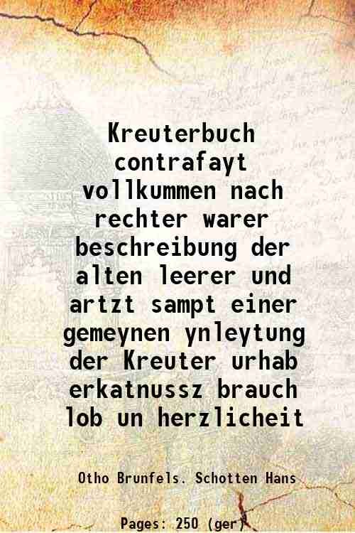 Kreuterbuch contrafayt vollkummen nach rechter warer beschreibung der alten leerer und artzt sampt einer gemeynen ynleytung der Kreuter urhab erkatnussz brauch lob un herzlicheit 1534