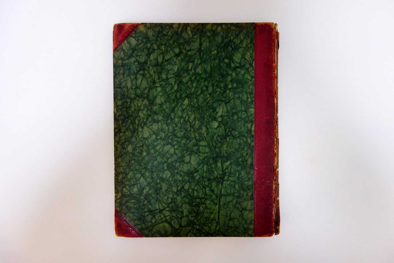 Legatura in discrete condizioni, con spellature e mancanze al rivestimento in pelle; cerniere fessurate con conseguente precedente distacco del rivestimento in pelle del dorso, restaurato mediante riapplicazione (vedi foto); esemplare compatto seppure di delicata consultazione. Pagine in pressoché ottimo stato conservativo.