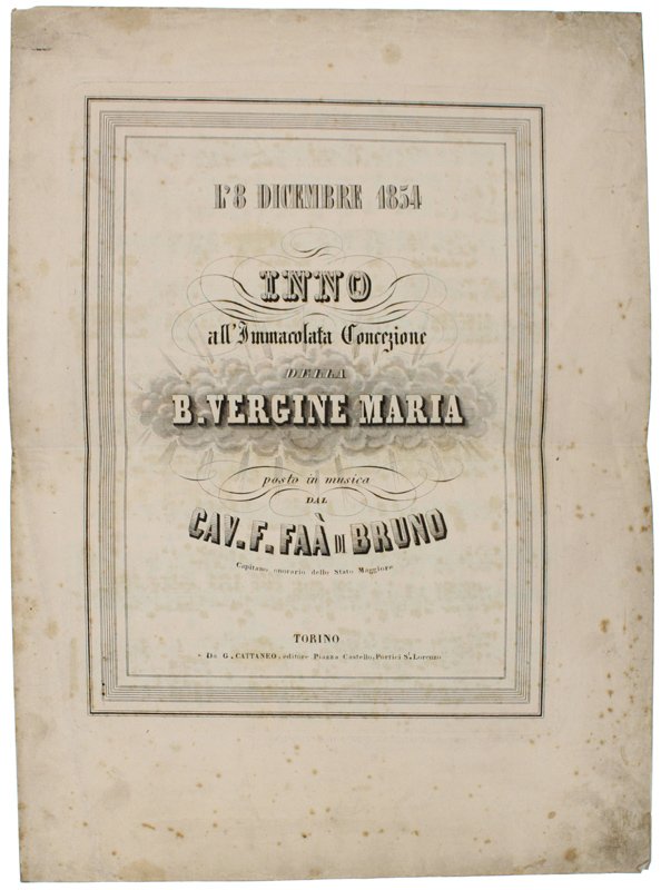L'8 DICEMBRE 1854 - INNO ALL'IMMACOLATA CONCEZIONE DELLA B.VERGINE MARIA POSTO IN MUSICA | Libri antichi e moderni | Faà Di Bruno Francesco