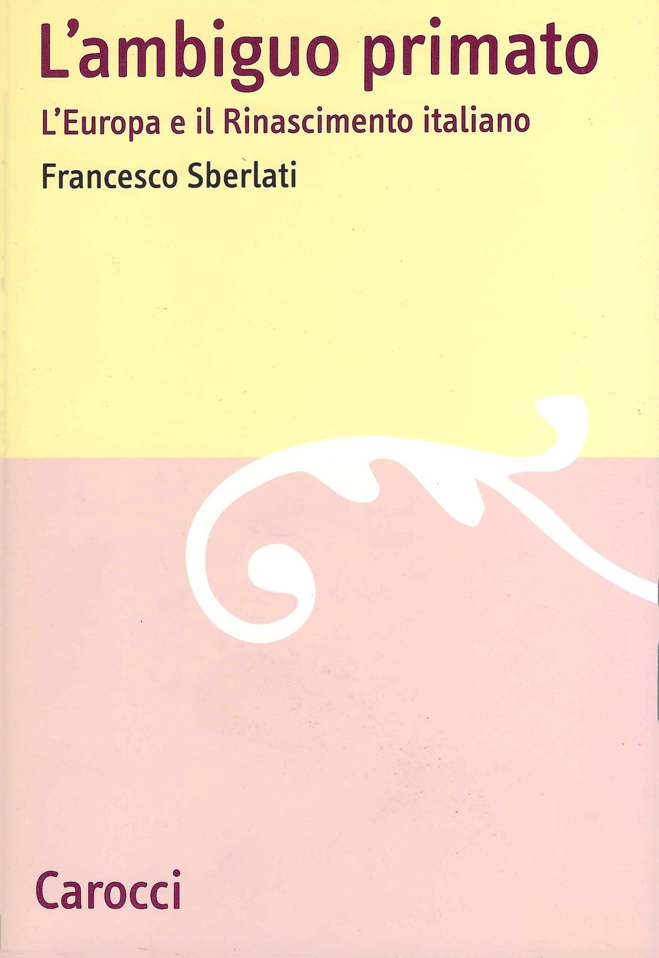 Sberlati Francesco, L'ambiguo primato. L'Europa e il Rinascimento italiano, Carocci, 2004.In-8 (Cm 21,9x14,9), pp. 352, brossura edit. Collana Lingue e letterature Carocci 39. Minimi segni d'uso, OTTIMO