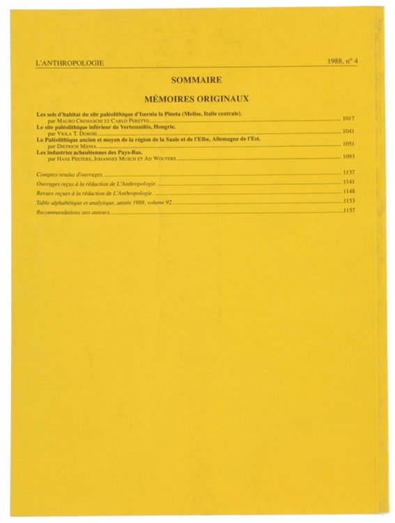 L'ANTHROPOLOGIE. Tome 92 - 1988. No. 4. | Libri antichi e moderni | Collectif (Rédacteur En Chef: Henry De Lumley)