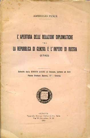 L'apertura delle relazioni diplomatiche tra la Repubblica di Genova e l'Impero di Russia (1782). Estratto dalla Rivista Ligure di Scienze, Lettere ed Arti | Libri antichi e moderni | Pesce Ambrogio