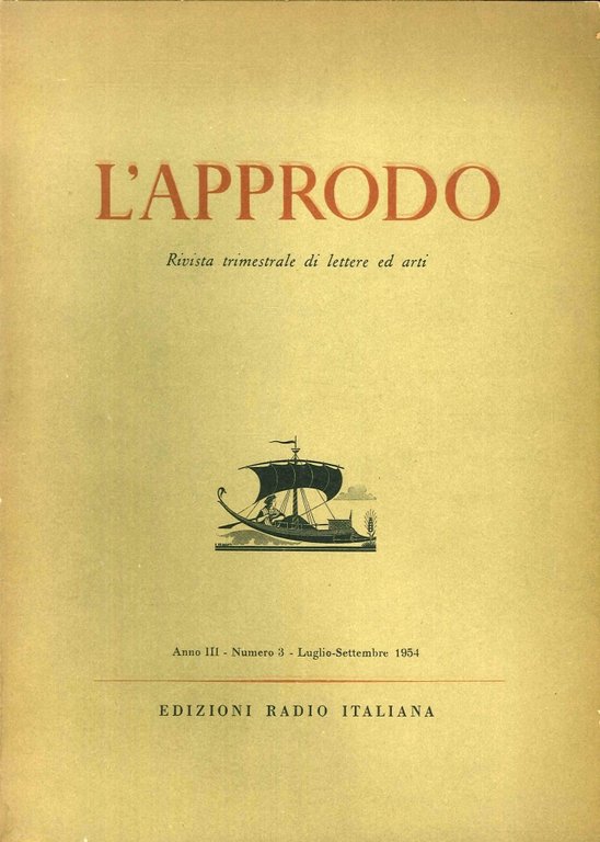 L'approdo. Rivista trimestrale di lettere ed arti. Anno III - numero 3 - Luglio-Settembre 1954