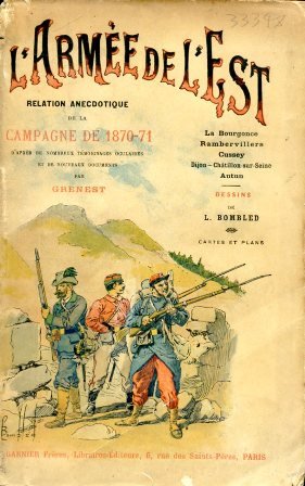 2 voll. in-8°, pp. 614; (4), 479; il primo vol. è in legatura coeva in m. pergamena e angoli con piatti marmorizzati e titolo manoscritto in rosso sul dorso, il secondo in brossura editoriale illustrata da Bombled a colori. Conservata all'interno del primo vol., applicata al risguardo, la brossura originale illustrata a colori da L. Bombled. Alcune cartografie militari e disegni dello stesso Bombled n.t. ad entrambi i voll. Buon esemplare. Timbri di privato possesso ed ex-libris al primo vol. Edizione originale di questa documentata opera sul conflitto franco-prussiano. Il primo vol. tratta dell'Armée de la Loire': Toury, Orléans, Coulmiers, Beaune-la-Rolande, Villepion, Loigny. Il secondo discorre invece delle operazioni dell'Armée de l'Est': La Bourgonce, Rambervilliers, Cussey, Dijon, Châtillon-sur-Seine, Autun.