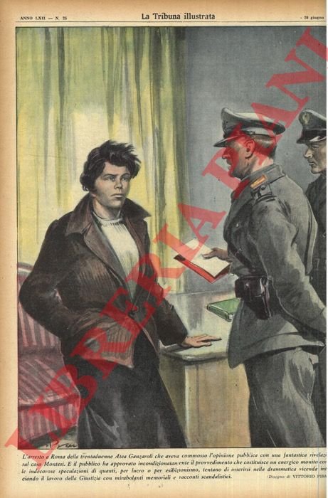 L'arresto a Roma della trentaduenne Atea Ganzaroli che aveva commosso l'opinione pubblica con una fantastica rivelazione sul aso Montesi. | Libri antichi e moderni | Pisani Vittorio