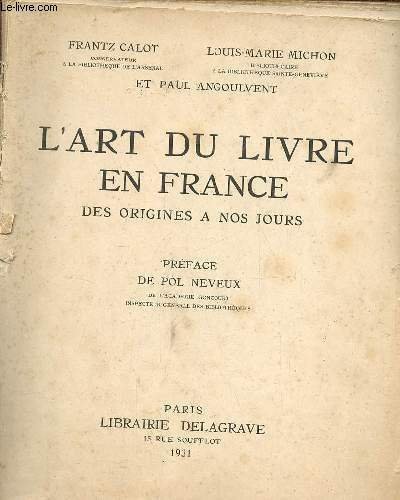 L'art du livre en France des origines à nos jours. | Libri antichi e moderni | Calot Frantz Michon Louis-Marie Angoulvent Paul