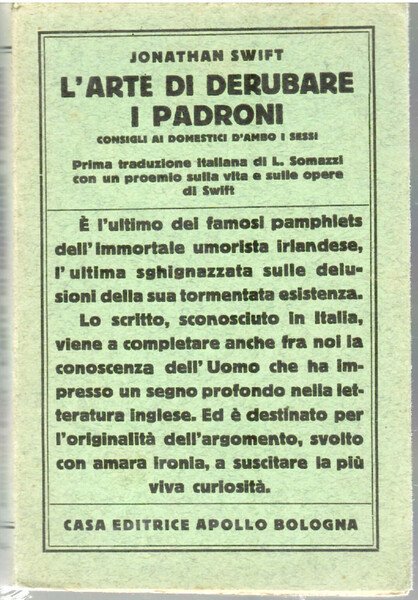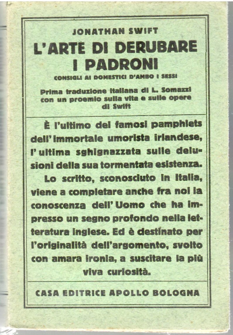 L'arte Di Derubare I Padroni. Consigli Ai Domestici D'ambo I Sessi | Libri antichi e moderni | Swift, Jonathan