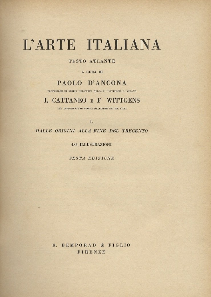 L'arte italiana. Testo atlante a cura di Paolo D'Ancona, I. Cattaneo e F. Wittgens. 1: Dalle origini alla fine del Trecento. 2: Il Rinascimento. 3: dal barocco all'età contemporanea. | Libri antichi e moderni | D'Ancona P. - Cattaneo I. - Wittgens F.