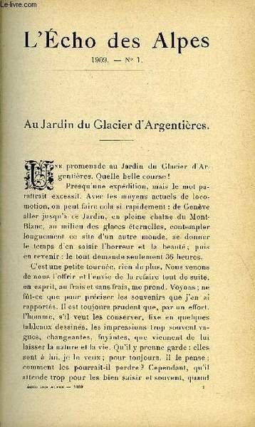 L'ECHO DES ALPES - PUBLICATION DES SECTIONS ROMANDES DU CLUB ALPIN SUISSE N°1 - AU JARDIN DU GLACIER D'ARGNETIERES PAR H. BALAVOINE, LE SKI PAR LE Dr L. W. | Libri antichi e moderni | Balavoine H, Dr L. W.