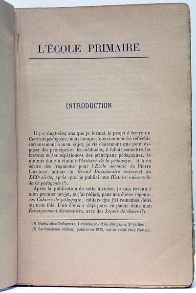 L'Ecole Primaire. Cahiers de Pédagogie d'après les Principes de Pestalozzi. | Libri antichi e moderni | Paroz (Jules).