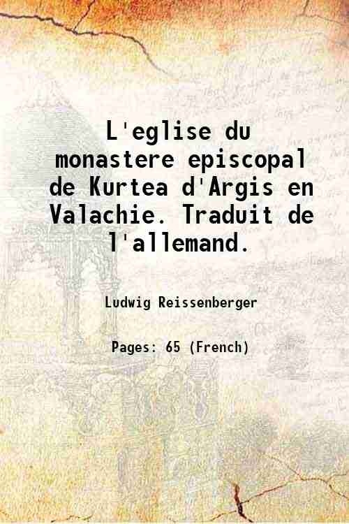 L'eglise du monastere episcopal de Kurtea d'Argis en Valachie. Traduit de l'allemand. 1867 | Libri antichi e moderni | Ludwig Reissenberger