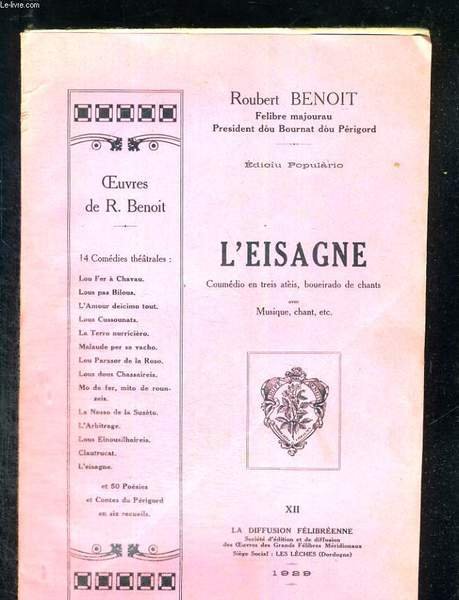 L'Eisagne. Comédie en trois actes avec musique et chant. | Libri antichi e moderni | Benoit Roubert