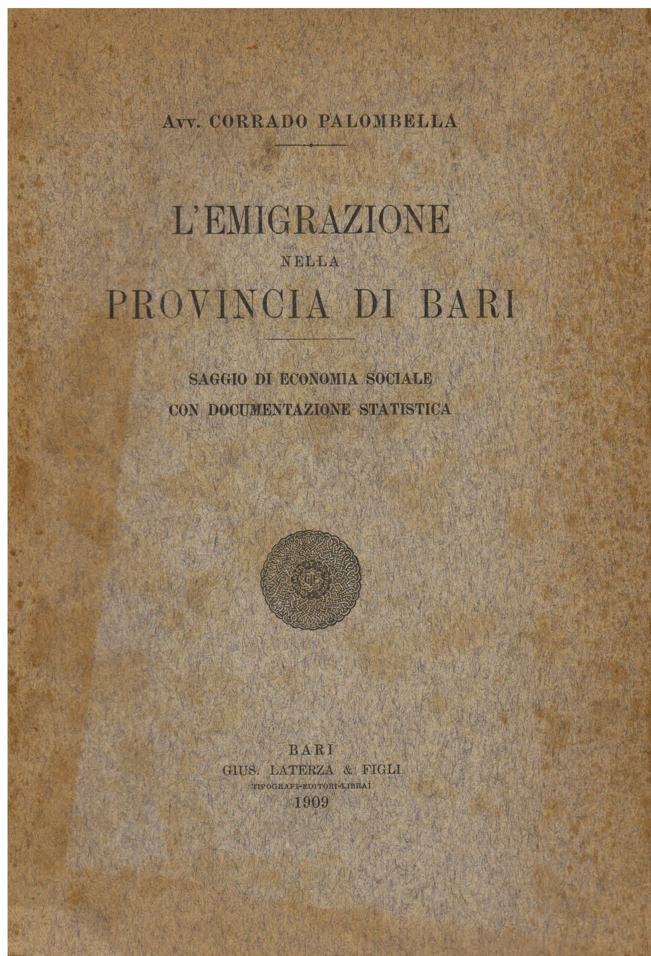 L' emigrazione nella provincia di Bari. Saggio di economia sociale con documentazione statistica | Libri antichi e moderni | Palombella Corrado