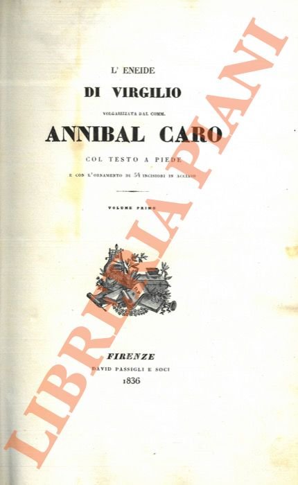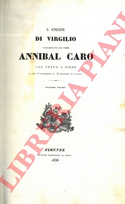 L'Eneide di Virgilio volgarizzata dal Comm. Annibal Caro col testo a piede e l'ornamento di 54 incisioni in acciaio. Volume primo e secondo. | Libri antichi e moderni | Virgilio - Annibal Caro