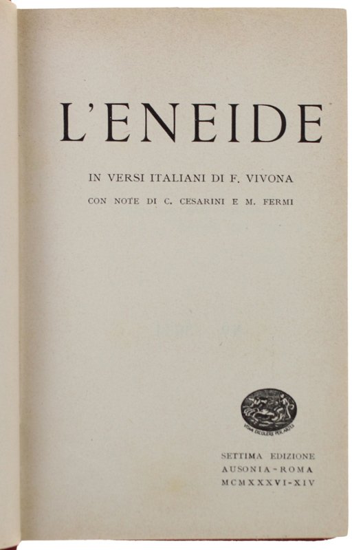 L'ENEIDE in versi italiani di F. Vivona con note di C.Cesarini e M.Fermi.