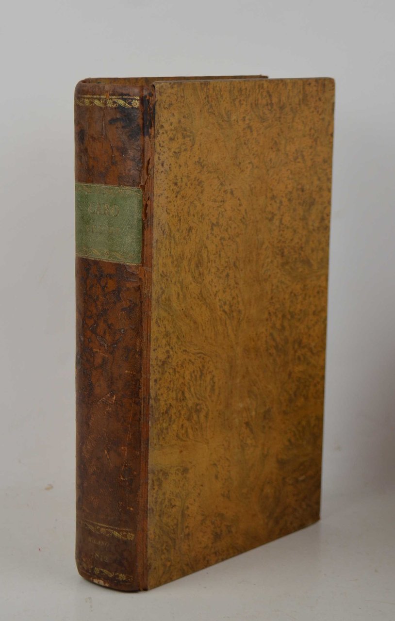 Cm. 20, pp. vii (1) 455 (1). Ritratto di Annibal Caro inciso in rame all'antiporta. Solida legatura coeva in mezza pelle, dorso liscio con titoli in oro su tassello verde. Qualche screpolatura superficiale al dorso, peraltro esemplare particolarmente fresco e marginoso. in eccellente stato di conservazione. Si tratta di uno dei rari esemplari stampati in carta grande.