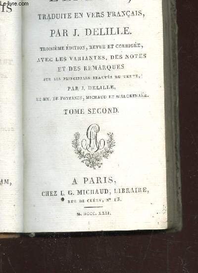 L'ENEIDE, TRADUITE EN VERS FRANCAIS PAR J. DELILLE - AVEC DES VARIANTES, DES NOTES ET DES REMARQUES - TOME SECOND.
