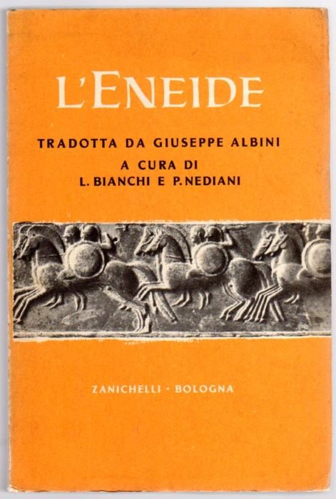 LXXIV, 518 p., 22 cm, bross. Condizioni : USATO - Stato : Buono, ordinari segni d'uso e del tempo, piccoli difetti alla bross. soprattutto al dorso. Altre note : L'Appendice comprende: A) Spunti e letture brevi su Virgilio e l'Eneide (1. "Voleva bruciarla!" Donato. - A. Bellessort; 2. "Roma, il soggetto ulteriore" A. Manzoni; 3. "L'italianità nell'Eneide" E. Romagnoli; 4. "Poesia universale" G. Carducci; 5 "E i vinti?" E. Paratore; 6. "Eroe nuovo in epopea nuova" G. Funaioli); B. Temi e richiami; C. Elenco di nomi e riscontri.