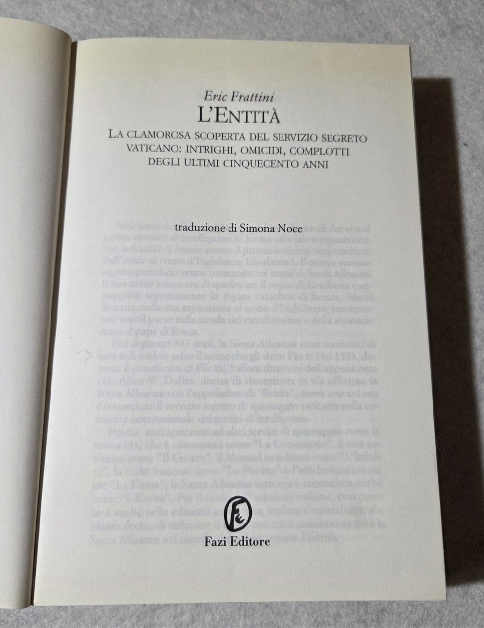 L' entita' : la clamorosa scoperta del servizio segreto vaticano: intrighi, omicidi, complotti degli ultimi cinquecento anni | Libri antichi e moderni | Frattini, EricNoce, Simona