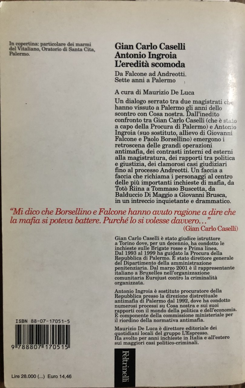 L'eredità scomoda. Da Falcone ad Andreotti. Sette anni a Palermo | Libri antichi e moderni | Caselli Gian Carlo - Antonio Ingroia, ,Caselli Gian Carlo - Antonio Ingroia