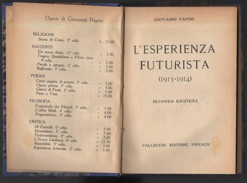 L'ESPERIENZA FUTURISTA (1927) | Libri antichi e moderni | Papini Giovanni