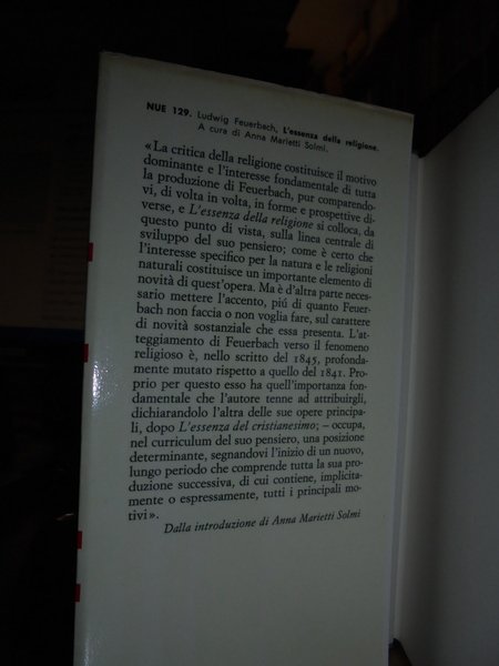 Ludwig, Feurbach. Torino, Einaudi, 1971. L' essenza della religione. In-16°, tela edit. con sovracopertina. xlv, 149, (1) pp. Ben conservato. Neg. mob. L.