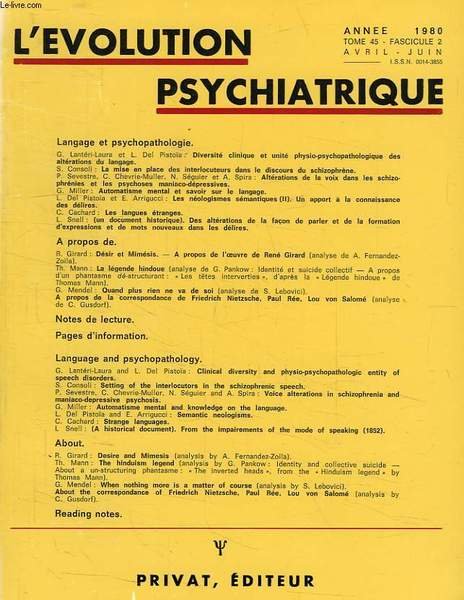 L'EVOLUTION PSYCHIATRIQUE, TOME 45, FASC. 2, AVRIL-JUIN 1980