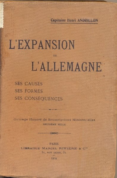 L'Expansion de l'Allemagne. Ses causes - ses formes - ses consequences. Ouvres Honoré de Souscriptions Ministerielles. | Libri antichi e moderni | Andrillon Henri.