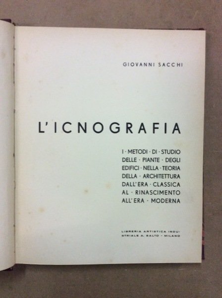 L'ICNOGRAFIA. | Libri antichi e moderni | Sacchi Giovanni