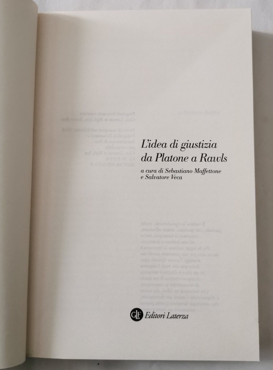 L'idea di giustizia da Platone a Rawls | Libri antichi e moderni | Maffettone, S. - Veca, S. ( a cura di )