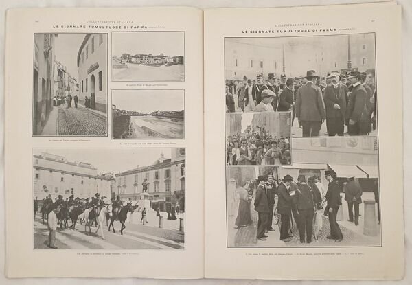 Numero del 28 giugno 1908 dell'Illustrazione italiana. Il volume in folio è riccamente illustrato da incisioni nel testo e fuori testo. All'interno: Contadini e padroni di Alfredo Panzini, Le giornate tumultuose di Parma, Genova il delitto negli uffici del giornale socialista "Il lavoro", I recenti acquisti per la galleria d'arte moderna di Roma ecc. In buone condizioni. Copertina editoriale in buone condizioni con lievi usure ai margini e dorso. Legatura editorialmente assente. Pagine in buone condizioni con fioriture. Piegatura orizzontale. In folio cm 41x30. Pp. da 609 a 632