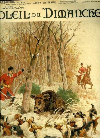 L'illustré, soleil du dimanche n° 49 - La mort du sanglier, aquarelle inédite de M. de Condamy, Morella par Edgard Poe, Vox Populi par Villiers de l'Isle-Adam, La larme par Maurice Curnonsky, Le chien d'Alcibiade par Armand Masson, La peste par Bertrand