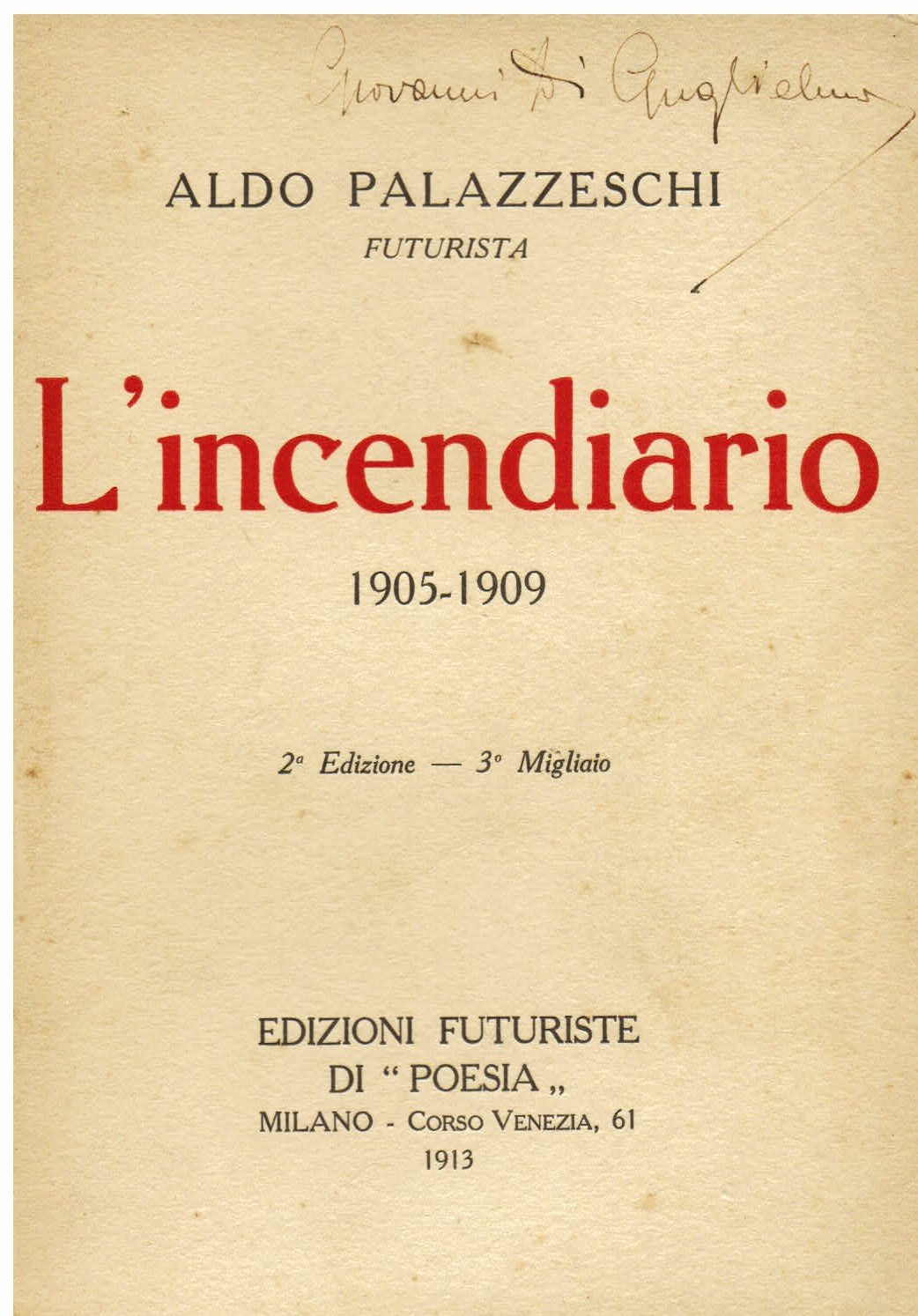 L'Incendiario. 1905 - 1909. 2a Edizione - 3° Migliaio | Libri antichi e moderni | Palazzeschi Aldo (Aldo Giurlani)