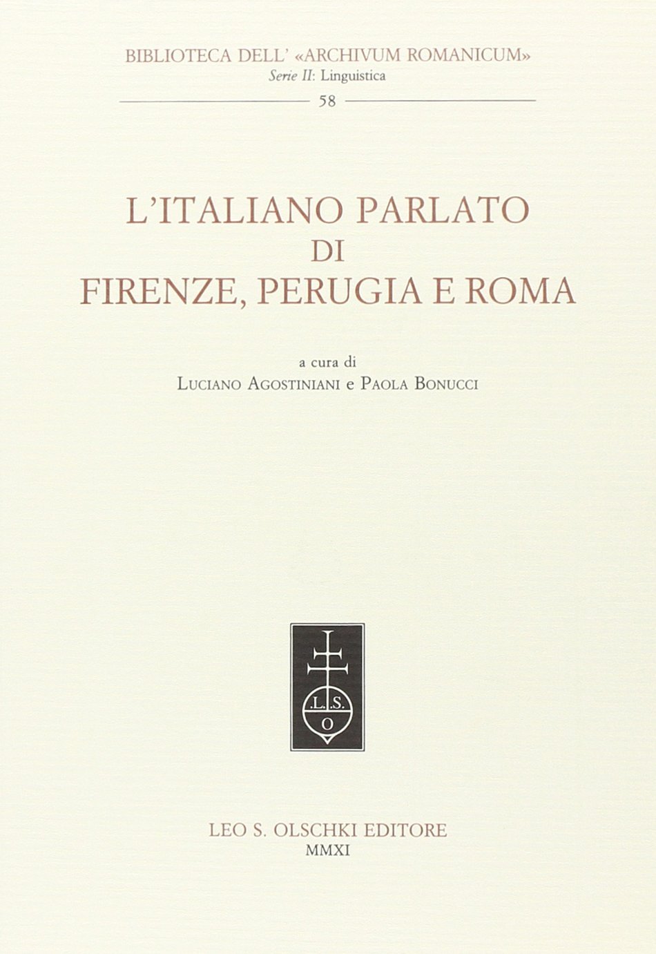 L'italiano parlato di Firenze, Perugia e Roma, Firenze, Casa Editrice Leo S. Olschki, 2011 | Libri antichi e moderni | Agostiniani L., Bonucci P., Agostiniani L., Bonucci P.