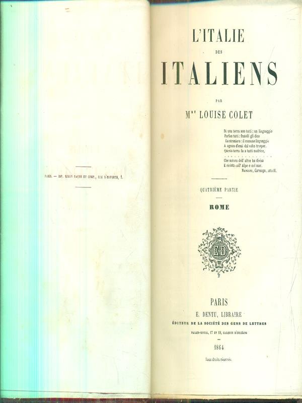 l'Italie des italiens quatrieme partie | Libri antichi e moderni | Louise Colet