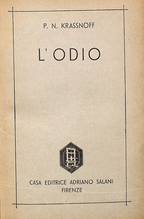 L'odio | Libri antichi e moderni | Krassnoff P. N.