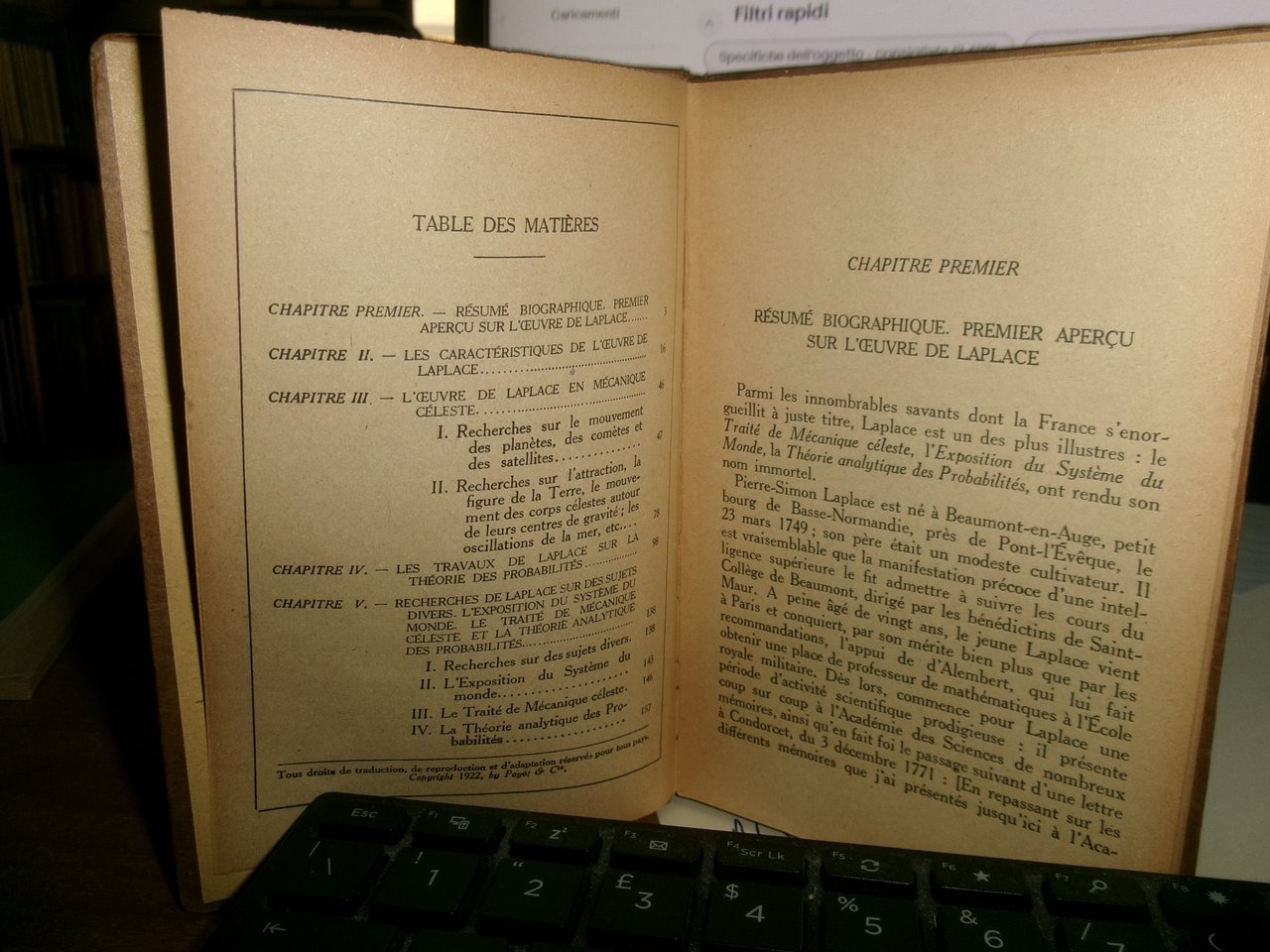 L' OEUVRE SCIENTIFIQUE de LAPLACE par H. Andoyer 1922 | Libri antichi e moderni |