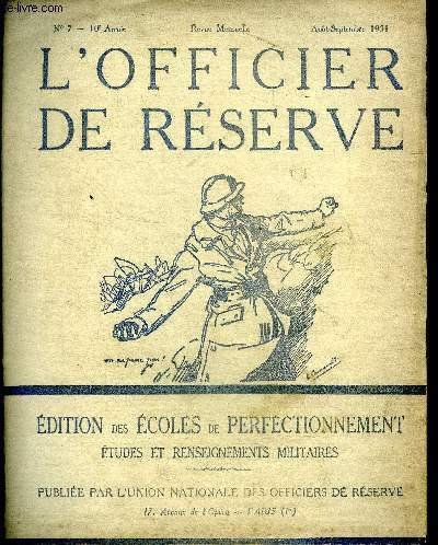 L'officier de réserve N°7 10è année Août Septembre 1931 Rôle du tir contre avions dans la défense contre aéronefs par le Général Pagezy | Libri antichi e moderni | Collectif